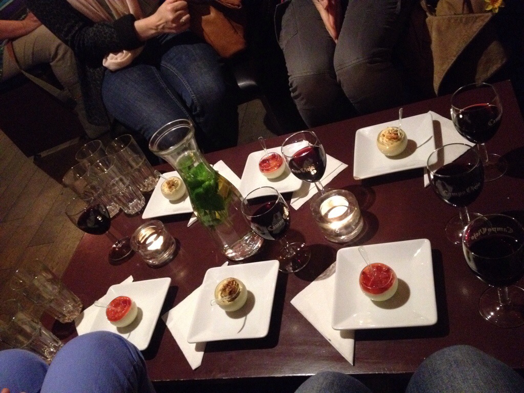 So, to the food. Along with our first glass of Campo Viejo Reserva, we were served Smoked Coley Croquettes, Lamb and Pistachio Meatballs, and Taleggio Cheese and Garlic Pesto Crostini. Absolutely delicious.