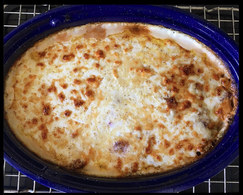I re-watched the episode before attempting it and it seems Elpida’s recipe was modified on Rick’s website but you can watch it on the BBC iPlayer and decide for yourself what you want to do. I modified the amounts but stayed pretty on course with the ingredients. The quantities given below is enough to work for the size dish I had and easily feeds six hungry heads.